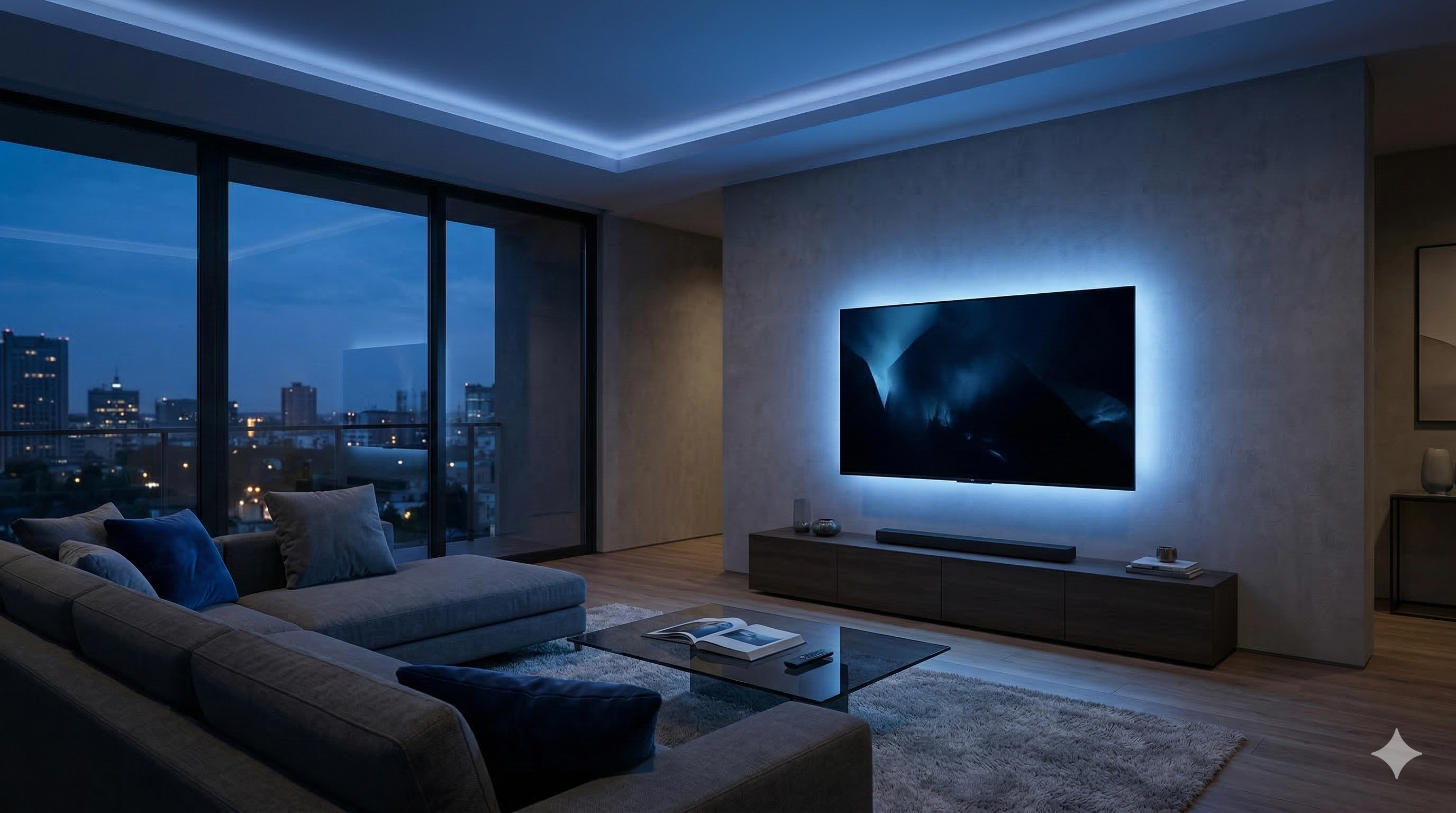 Durch die Kombination von TV-Status und Sonnenstand wird eine effiziente Beleuchtung gewährleistet.